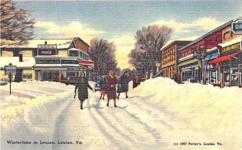 Title (ebay affiliate link): Louisa VA Snowy 1947 Street View Store Fronts Coca-Cola Sign Postcard