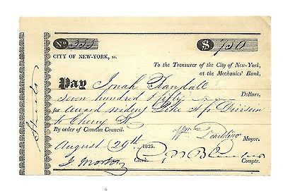 Title (ebay affiliate link): RARE 1825 City of New-York CHECK Signed by NY Mayor dated "Aug. 29, 1825"