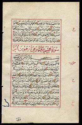 Title (ebay affiliate link): Illumnated Ottoman Koran Leaf Lot (20) Red Sura Heading Constantinople Turkey