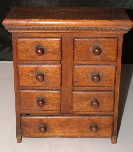 Title (ebay affiliate link): ANTIQUE 19TH C VICTORIAN MINIATURE WOODEN CHEST OF DRAWERS SPICE JEWELRY SEWING