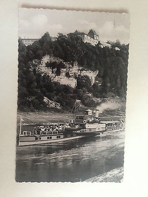 GERMANY FURSTENBERG WESER BLICK AUF DAMPFERANLEGER ECHTE FOTO POSTCARD 1964