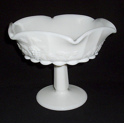 Title (ebay affiliate link): Vintage Westmoreland Paneled Grape Milk Glass Footed Lipped Comport 6 1/8"