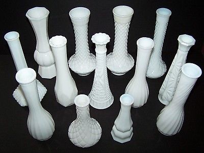 Title (ebay affiliate link): Milk Glass Vases, Lot Of 13, Asst Shapes & Sizes. Great For Receptions/Parties