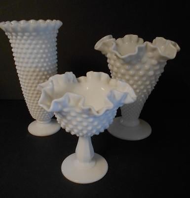Title (ebay affiliate link): LOT OF 3 VINTAGE HOBNAIL MILK GLASS VASES..RUFFLED EDGE..FENTON