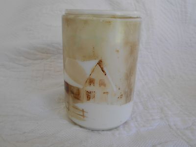 Antique Miniature Oil Lamp Globe Shade Hand painted Milk Glass scenic chimney