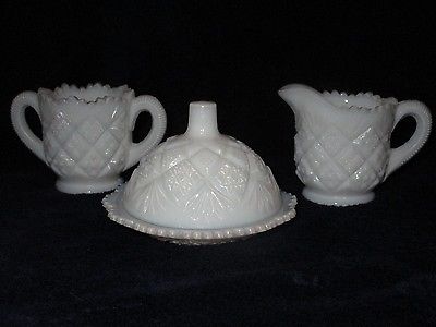 Title (ebay affiliate link): Vintage WESTMORELAND CHILD CREAMER OPEN SUGAR COVERED BUTTER / Milk Glass /1950s