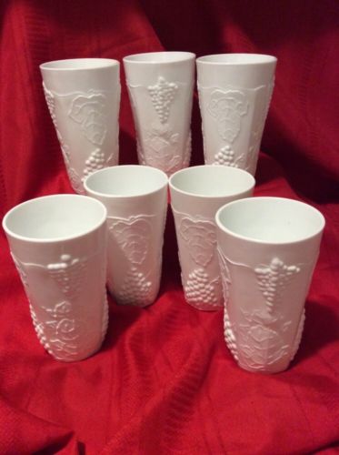 Title (ebay affiliate link): Set of 7 ... VINTAGE WHITE MILK GLASS TUMBLERS ... Harvest Grape