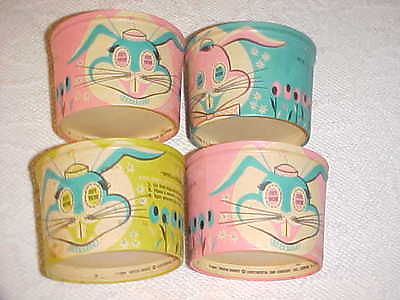 4-Vintage continental can company Ice Cream Easter Bunny tub's Rare 40's/50's