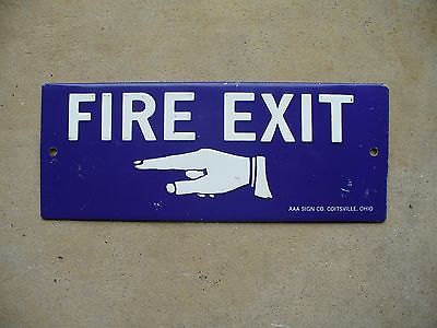 Vintage Fire Exit Pointing Finger Hand Sign Embossed Tin Original Made in USA