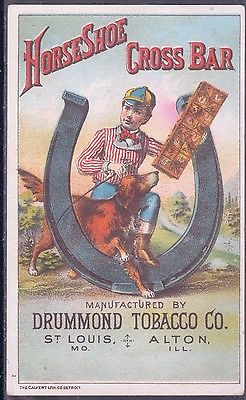 CIRCA 1884 DRUMMOND CHEWING TOBACCO TRADE CARD, HORSESHOE CROSS BAR, ALTON, ILL.