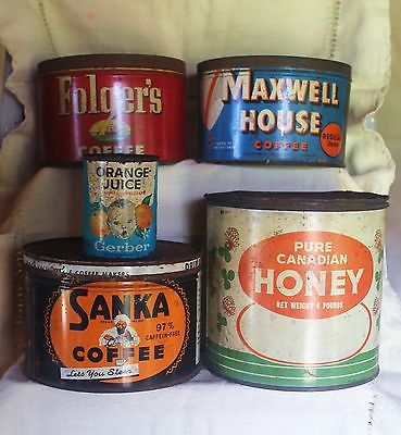 Vintage Primitive Metal Tins - Mixed Lot of 5