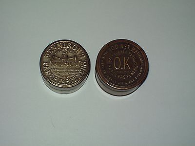 Vintage-Round-TIN-Container-Dennison's-OK-PAPER FASTENERS-Lot-of 2-Empty