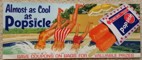 Title (ebay affiliate link): Vintage NOS 1964 Popsicle kids swim store sign advertising Joe Lowe 13" X 5" NM