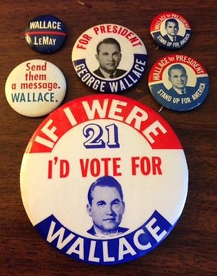 Title (ebay affiliate link): Great Group of Six George Wallace Presidential Campaign Pin Pinback Buttons