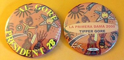 Title (ebay affiliate link): Two Artistic Al and Tipper Gore (one in Spanish) 2000 Campaign Pinback Buttons