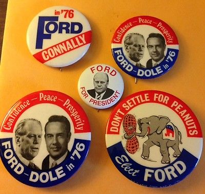 Title (ebay affiliate link): Five Nice Ford and Dole 1976 Presidential Campaign Pin PInback Buttons