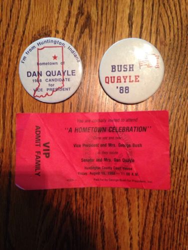 Bush Quayle Pins And Vip Rally Pass