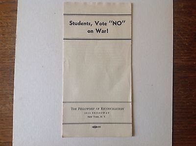 Title (ebay affiliate link): 1930's Students, Vote "No" On War! Pamphlet