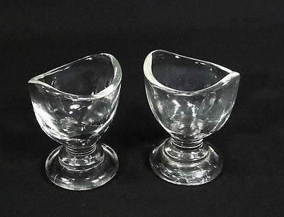 2 ANTIQUE MEDICAL OPHTHALMIC EYEWASH EYE BATH EYECUP BLOWN GLASS PEDESTAL CUPS