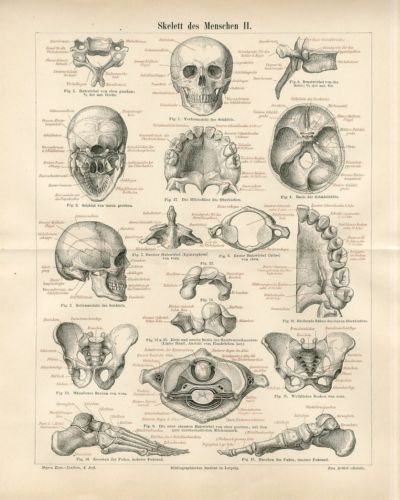 Title (ebay affiliate link): 1887 HUMAN SKELETON SKULL BONES ANATOMY Antique Engraving Print