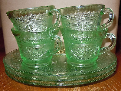 3 Vintage Green Depression Glass Snack Sets Plus Extra Cup