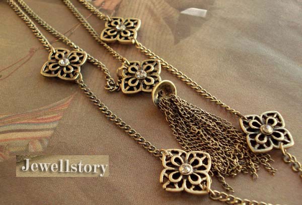 Title (ebay affiliate link): Unique Antique Double Layers Flowers Tassel Necklace A+