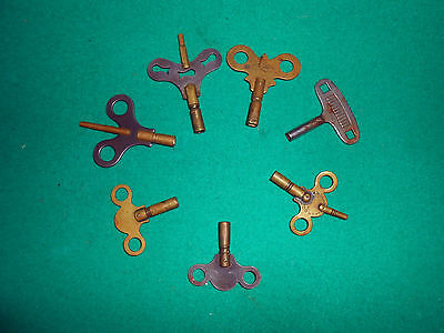 7 ANTIQUE CLOCK KEYS - GERMANY + WATERBURY +
