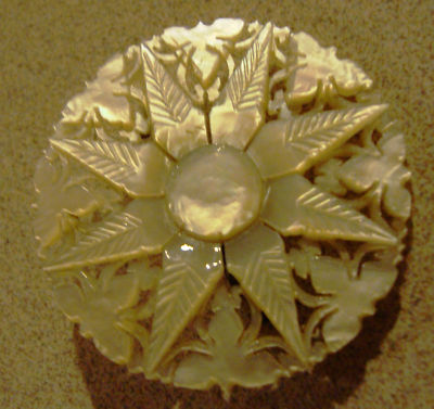 Title (ebay affiliate link): ANTIQUE VNTG "STAR OF BETHLEHEM" CARVED MOP BUTTON/PIN