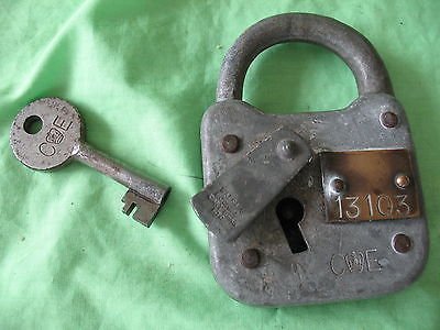 Old antique vintage Walsall Lock & Cart Gear customs & excise padlock & key