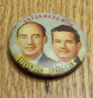 Title (ebay affiliate link): VINTAGE 1952 GO FORWARD WITH STEVENSON/SPARKMAN POLITICAL PINBACK PIN BUTTON-GD