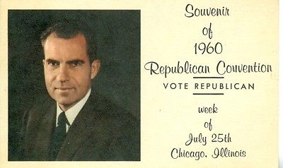 Title (ebay affiliate link): SCARCE POSTCARD SOUVENIR CHICAGO 1960 REPUBLICAN CONVENTION WITH PHOTO OF NIXON