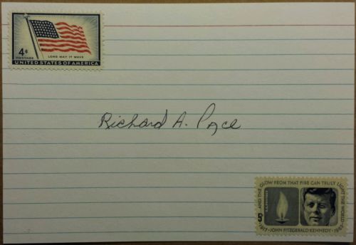 KENNEDY ASSASSINATION FUNERAL RICHARD PACE SIGNED INDEX CARD JFK RODE LEAD HORSE