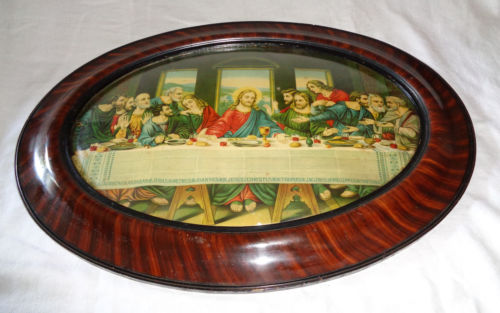 Title (ebay affiliate link): Vtg Last Supper Oval Bubble Convex Glass Tiger Wood 24x18 Picture Frame antique