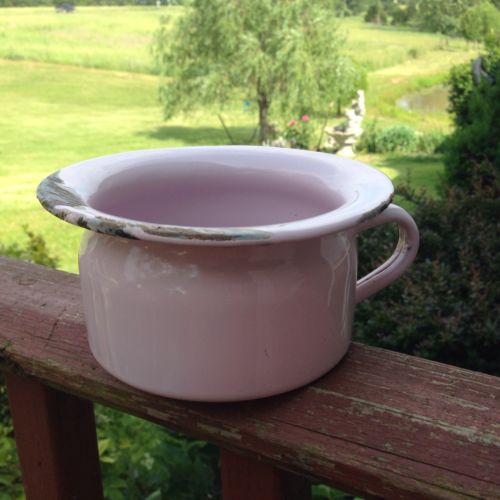 Vintage Childs Childrens Enamelware Chamber Pot Pink Great Color
