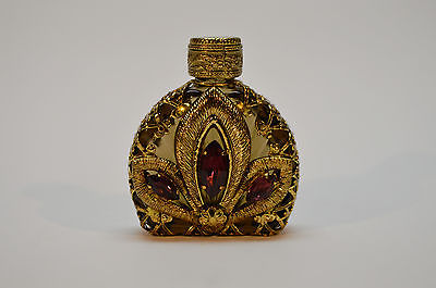 Vtg Czech flligree perfume bottle smoke glass purple stones stone glass dauber