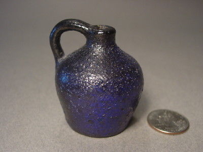 Unusual ANTIQUE MINIATURE DEEP COBALT BLUE GLAZED STONEWARE JUG Redware Whiskey