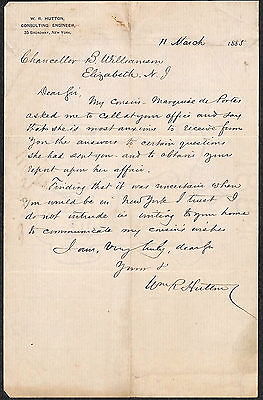 William Rich Hutton, Western Artist NY Engineer, 1885 Autograph Letter