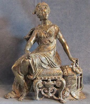 Antique Bronzed Spelter White Metal Art Nouveau Woman Statue Ansonia Clock Co.