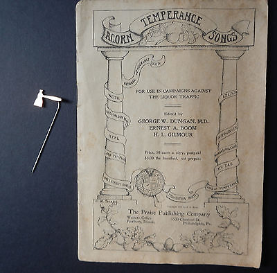 Lot of Temperance Songbook and Carry A. Nation Hatchet Pin 1908