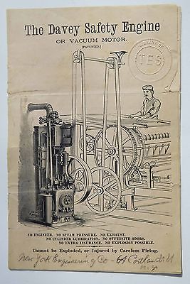 Great Antique Vacuum "DAVEY SAFETY ENGINE" Advertising Brochure Circa 1885 WOW!!