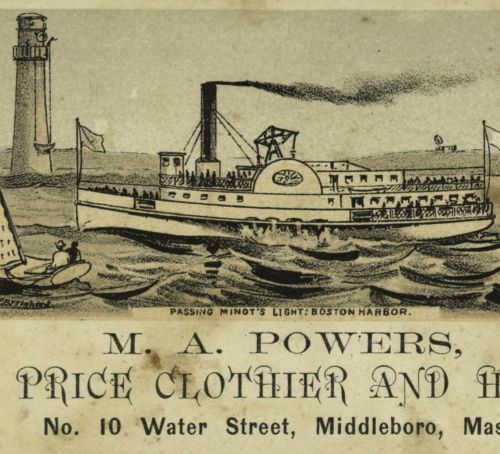 Title (ebay affiliate link): Steamship Boston Harbor Minot's Light Powers Middleboro MA Victorian Trade Card