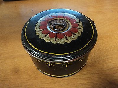Vintage Hand Tole Painted Antique Tin Toleware sewing box with contents!
