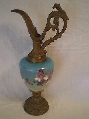 ANTIQUE VICTORIAN MANTLE GARNITURE EWER VASE w/ HANDPAINTED FORGET-ME-NOT FLOWER