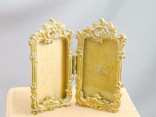 ORNATE Antique Standing Metal Double 2 Photo Picture Frame NR