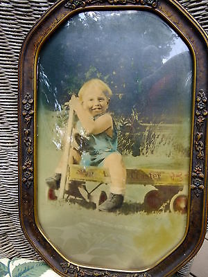 Antique Vintage Bubble Convex Glass Frame Photo Picture Painting 11" X 17"