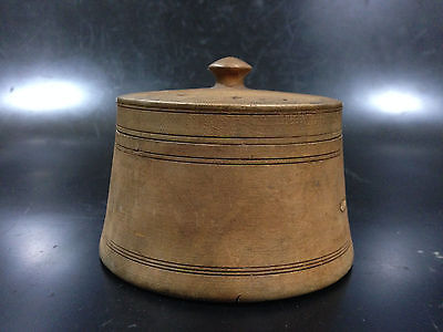 Antique Treen Turned Wood Box Lid Sugar Spice Snuff Tobacco