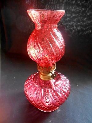 Antique EAPG Cranberry Glass Miniature Oil Lamp Beaded Swirl Pattern