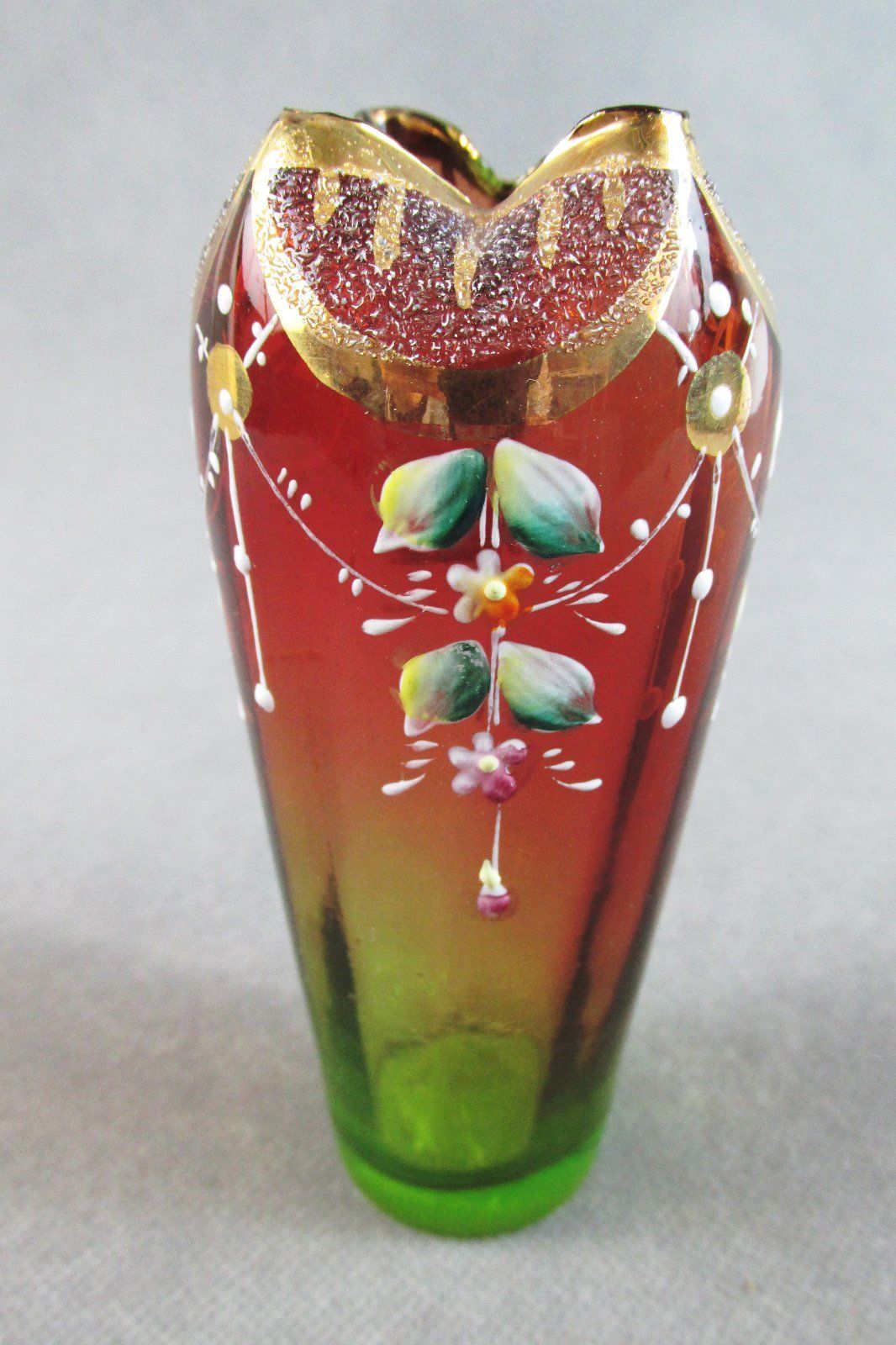 c1890 VICTORIAN Art Glass VASE Rubina Verde w/Coralene & Enamel