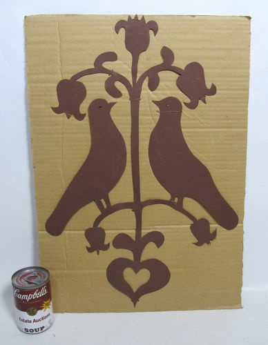 Vintage Folk Art Primitive Metal Sculpture / Stencil Floral Dove Decor #7 yqz