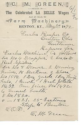 1892 C M GREEN FARM MACHINERY LA BELLE WAGON BENTON KY PEERLESS REAPER CANTON OH
